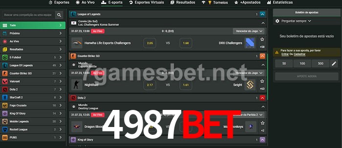 O 4987bet oferece uma grande seleção de opções de apostas em e-sports com probabilidades competitivas